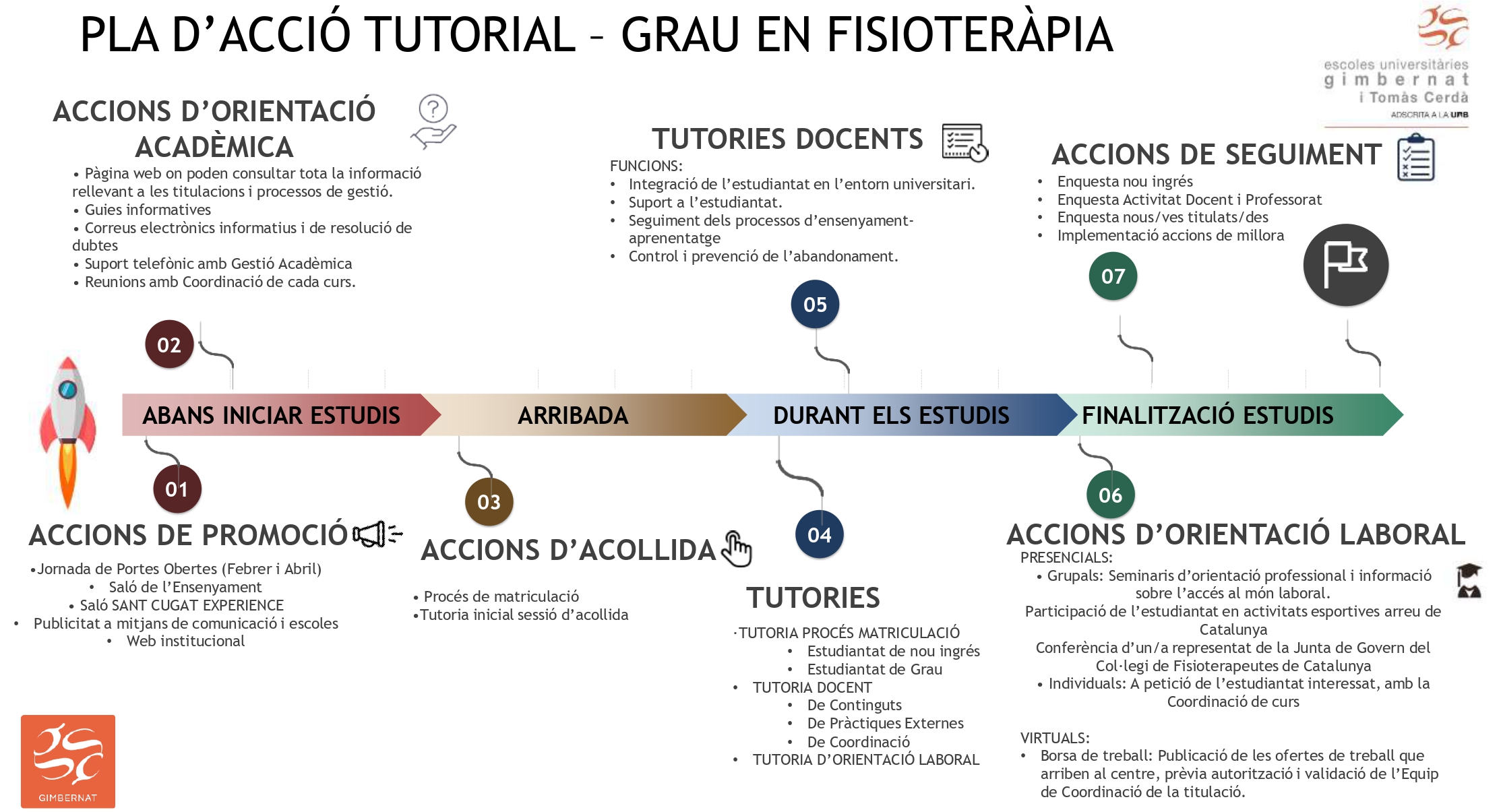 El Pla d’acció tutorial a l’Estudiant de Fisioteràpia defineix les actuacions programades, encaminades a: